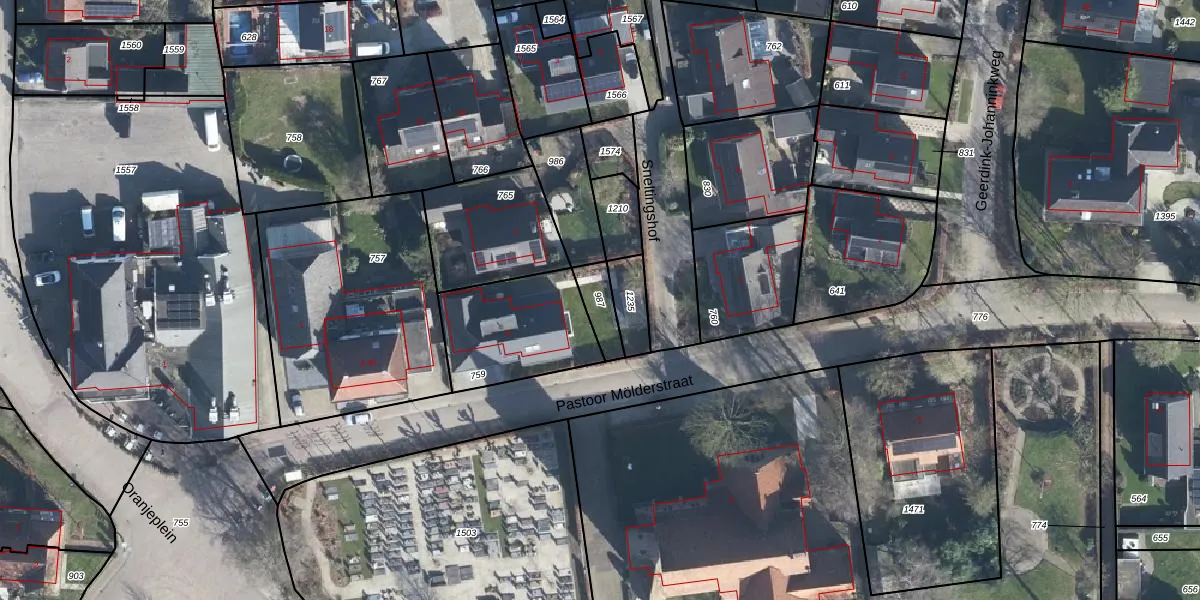 Gebruik de zoekbalk of klik op een perceel om informatie over het perceel te bekijken.