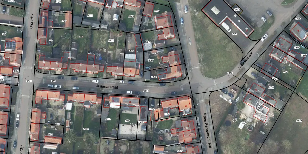 Gebruik de zoekbalk of klik op een perceel om informatie over het perceel te bekijken.