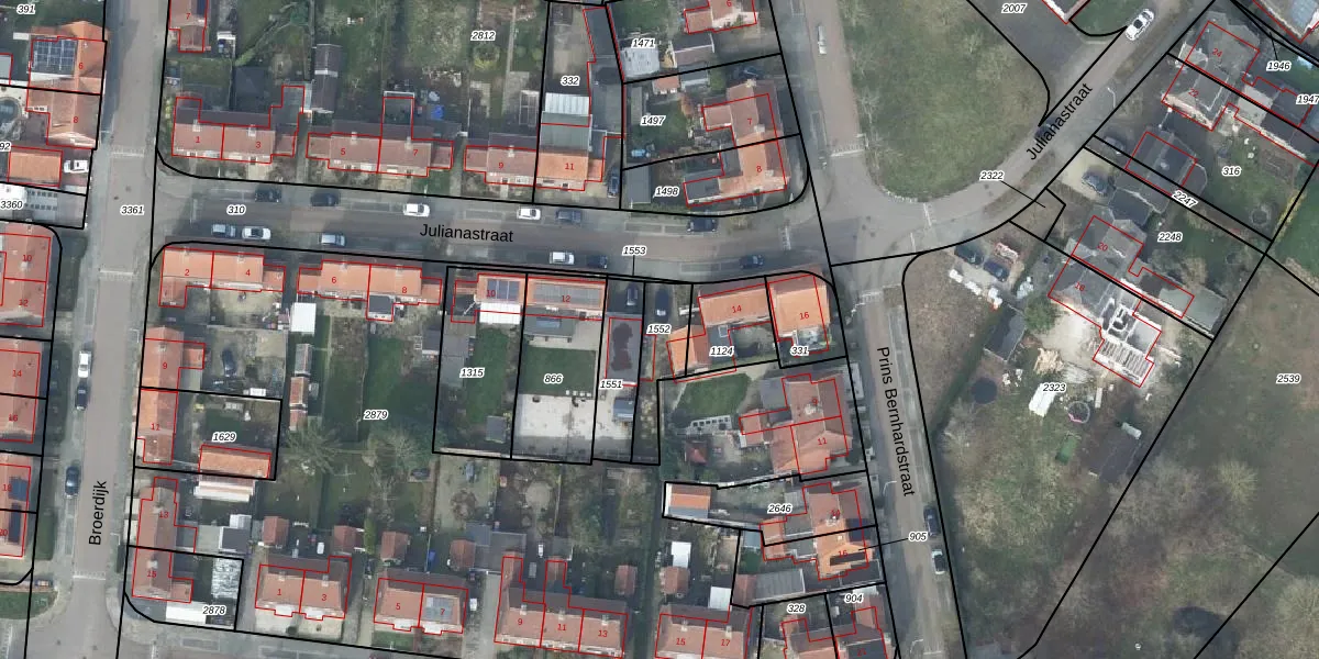 Gebruik de zoekbalk of klik op een perceel om informatie over het perceel te bekijken.