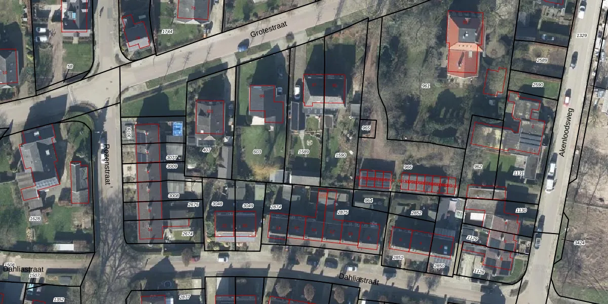 Gebruik de zoekbalk of klik op een perceel om informatie over het perceel te bekijken.