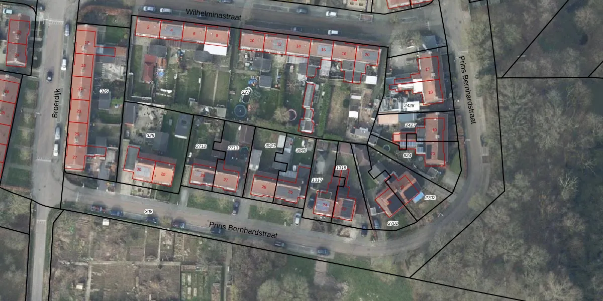 Gebruik de zoekbalk of klik op een perceel om informatie over het perceel te bekijken.