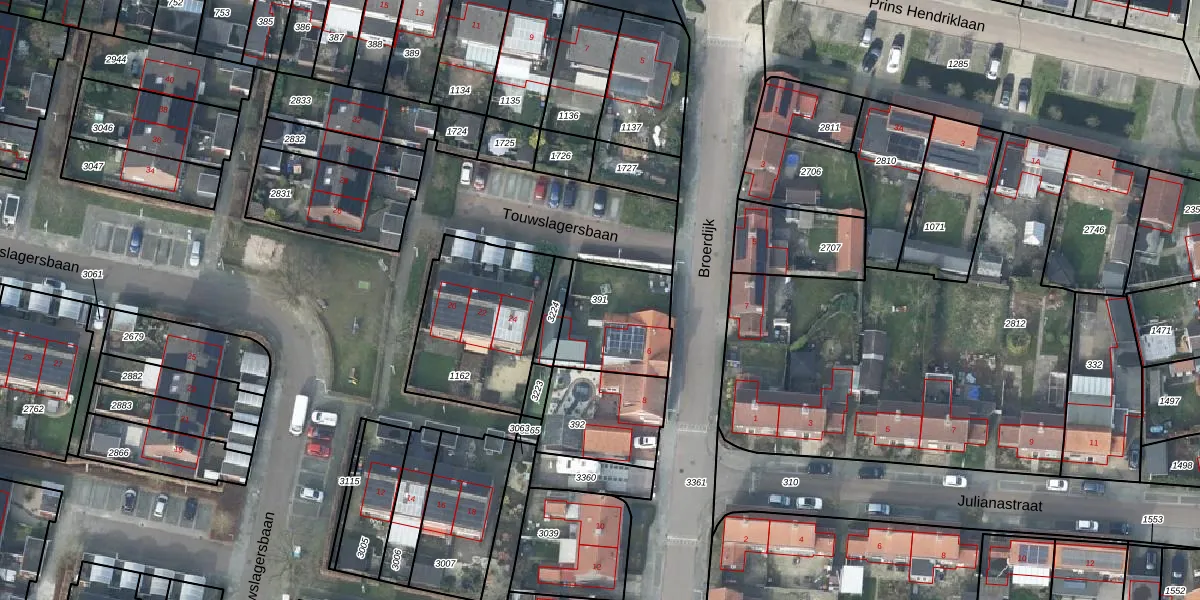 Gebruik de zoekbalk of klik op een perceel om informatie over het perceel te bekijken.