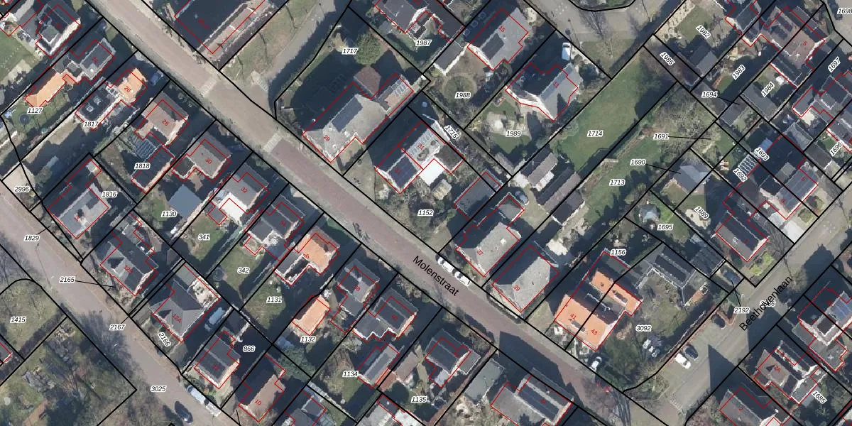 Gebruik de zoekbalk of klik op een perceel om informatie over het perceel te bekijken.