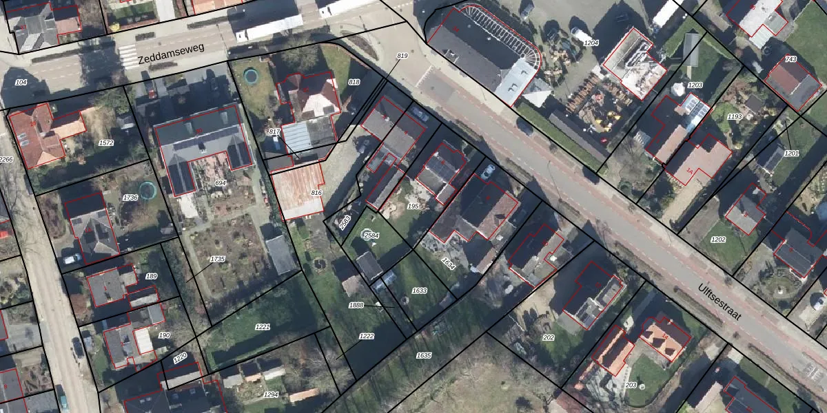 Gebruik de zoekbalk of klik op een perceel om informatie over het perceel te bekijken.
