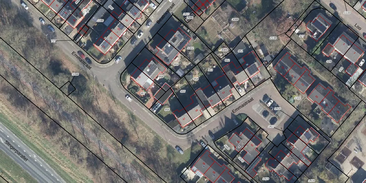 Gebruik de zoekbalk of klik op een perceel om informatie over het perceel te bekijken.