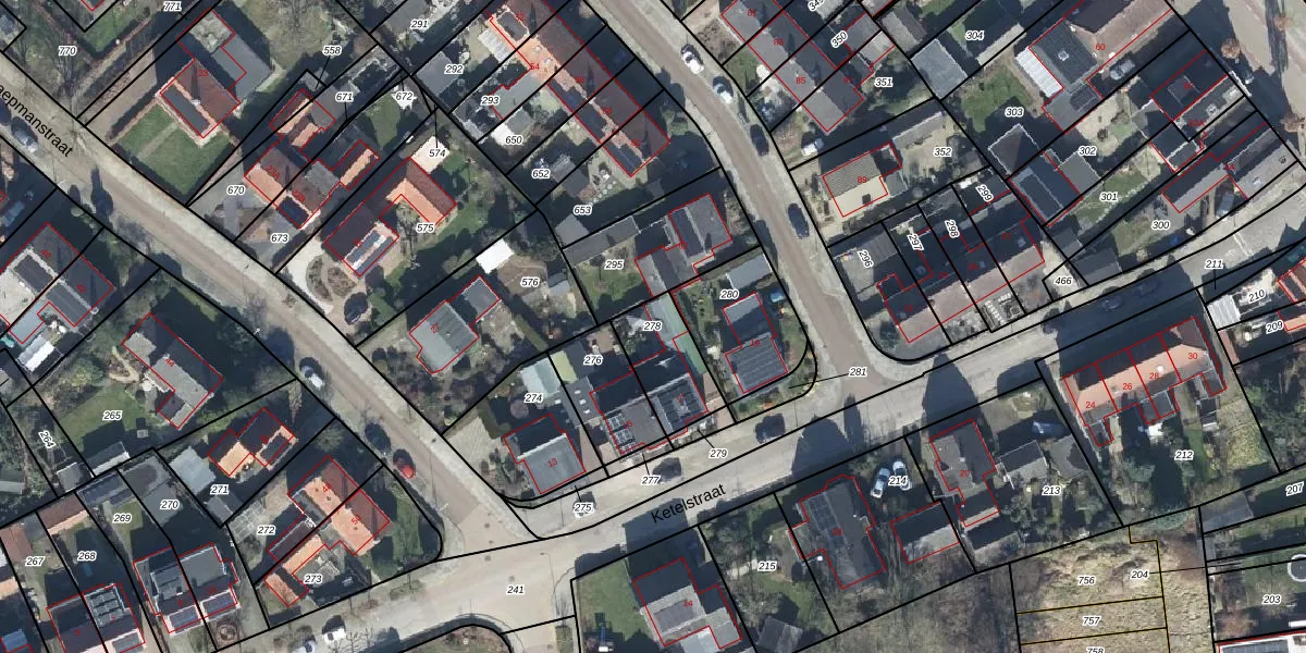 Gebruik de zoekbalk of klik op een perceel om informatie over het perceel te bekijken.