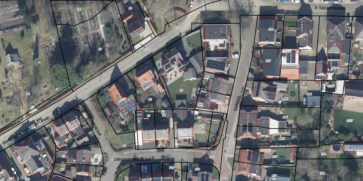 Gebruik de zoekbalk of klik op een perceel om informatie over het perceel te bekijken.