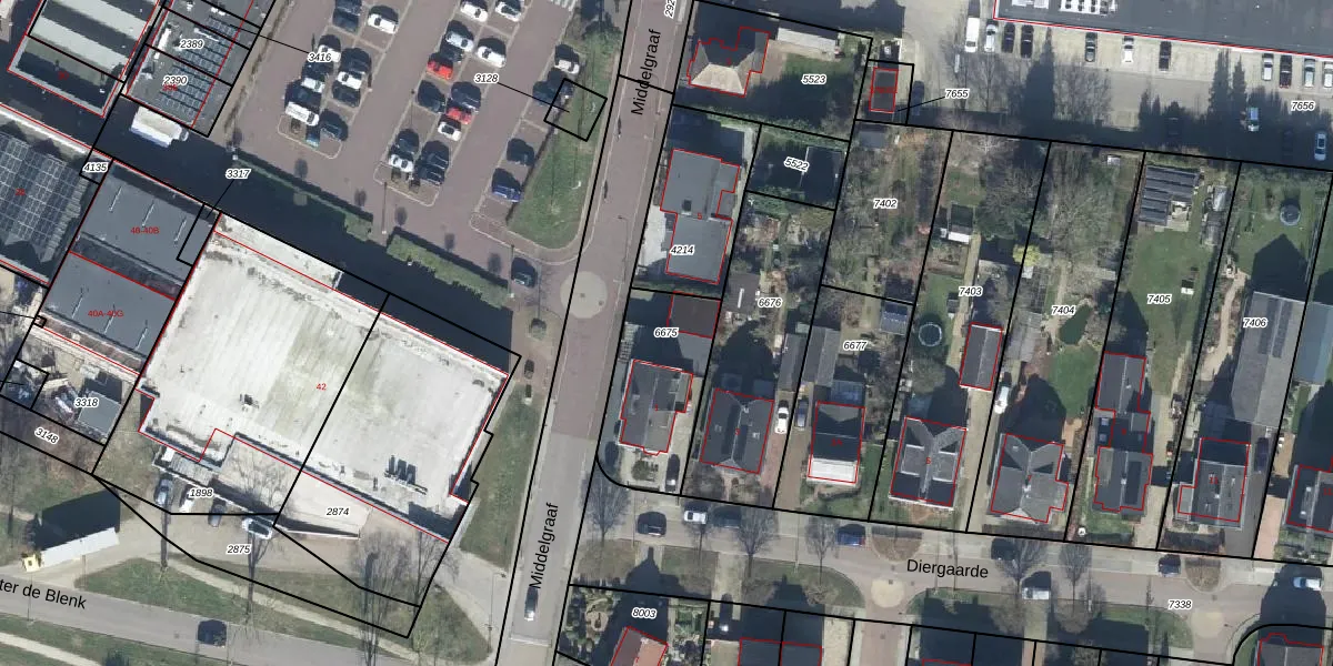 Gebruik de zoekbalk of klik op een perceel om informatie over het perceel te bekijken.
