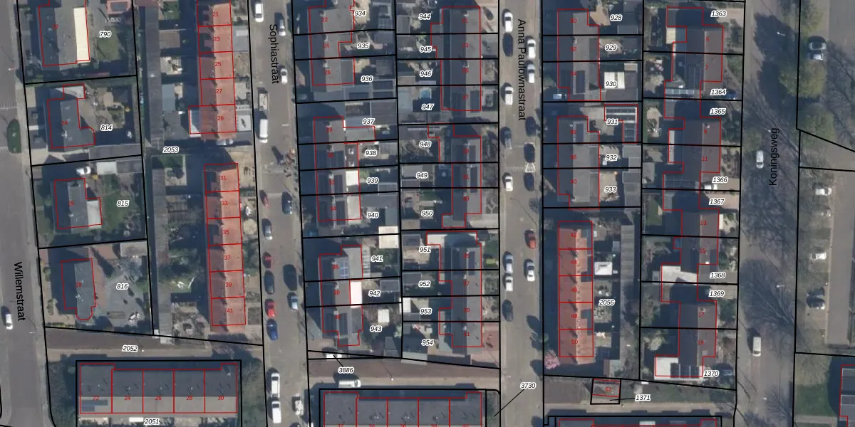 Gebruik de zoekbalk of klik op een perceel om informatie over het perceel te bekijken.