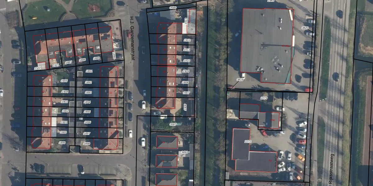 Gebruik de zoekbalk of klik op een perceel om informatie over het perceel te bekijken.
