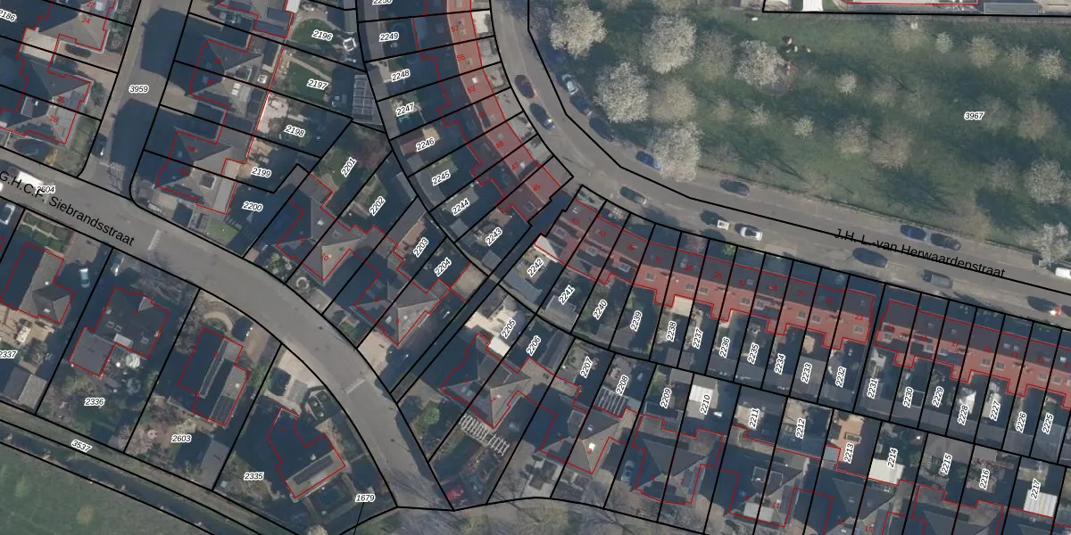 Gebruik de zoekbalk of klik op een perceel om informatie over het perceel te bekijken.