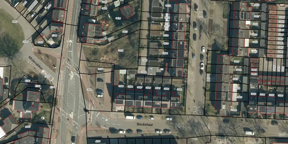 Gebruik de zoekbalk of klik op een perceel om informatie over het perceel te bekijken.