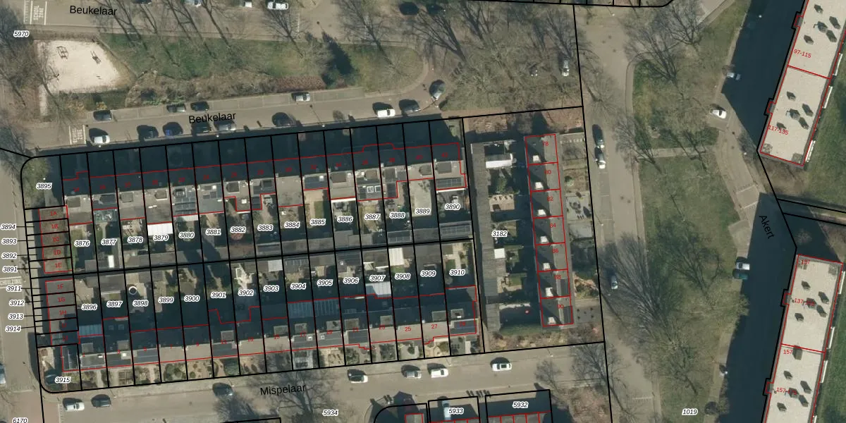 Gebruik de zoekbalk of klik op een perceel om informatie over het perceel te bekijken.
