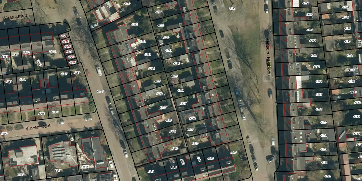 Gebruik de zoekbalk of klik op een perceel om informatie over het perceel te bekijken.