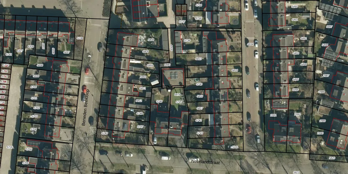 Gebruik de zoekbalk of klik op een perceel om informatie over het perceel te bekijken.