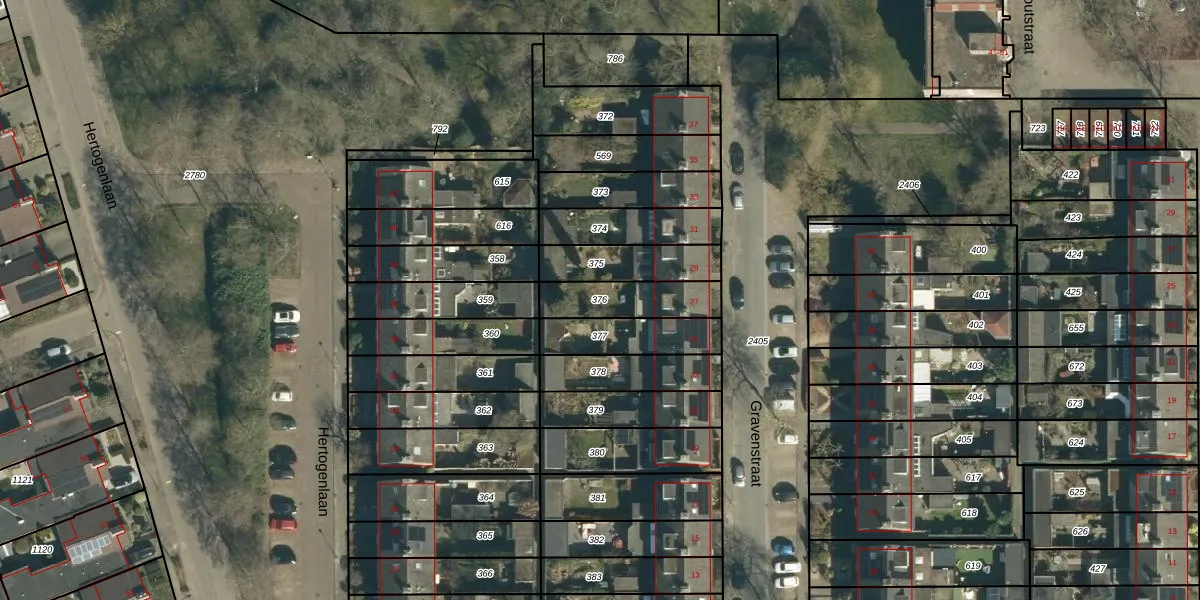 Gebruik de zoekbalk of klik op een perceel om informatie over het perceel te bekijken.