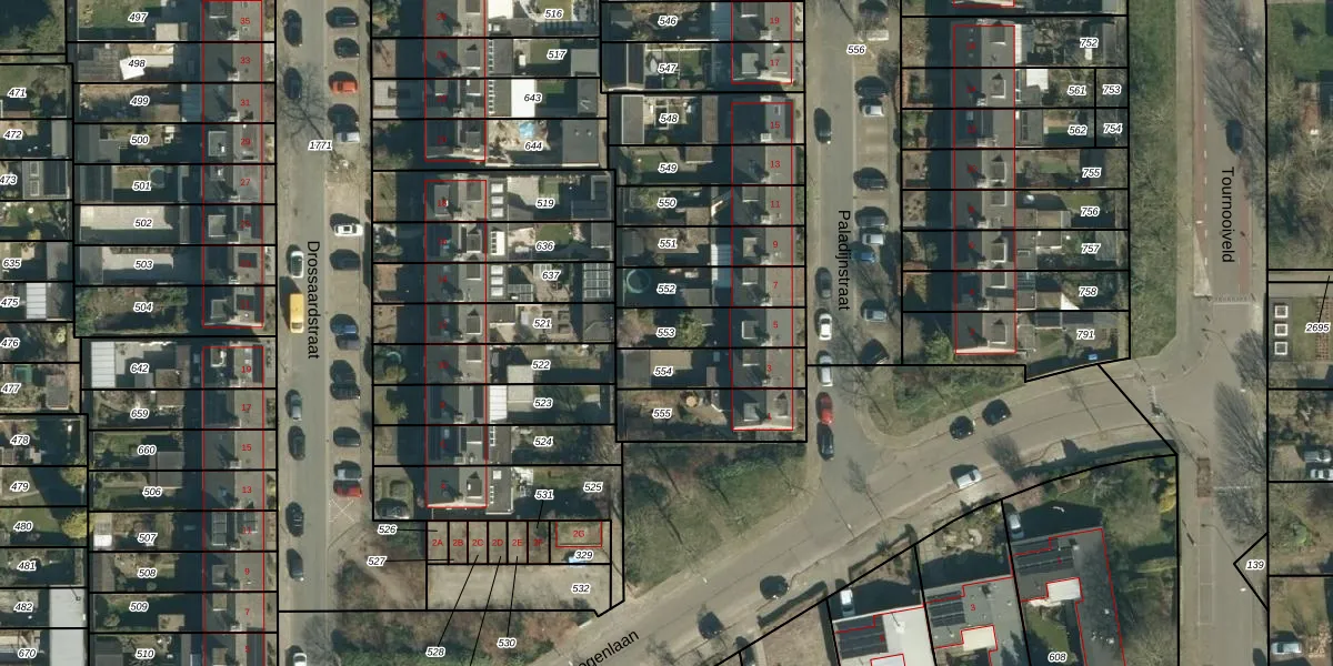 Gebruik de zoekbalk of klik op een perceel om informatie over het perceel te bekijken.