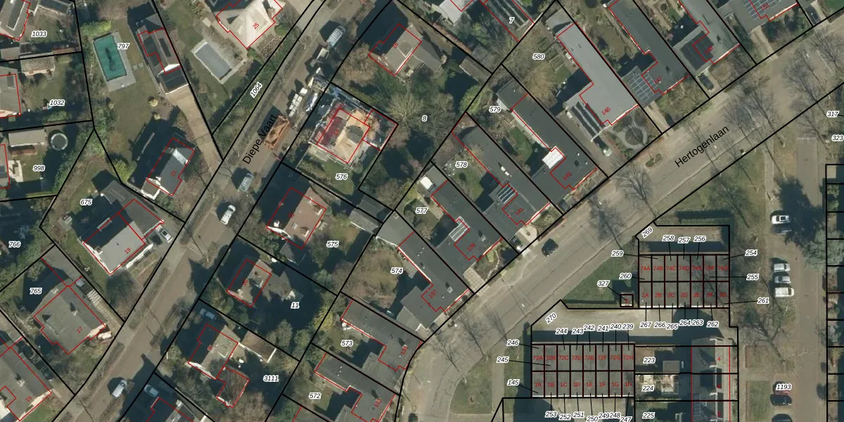 Gebruik de zoekbalk of klik op een perceel om informatie over het perceel te bekijken.