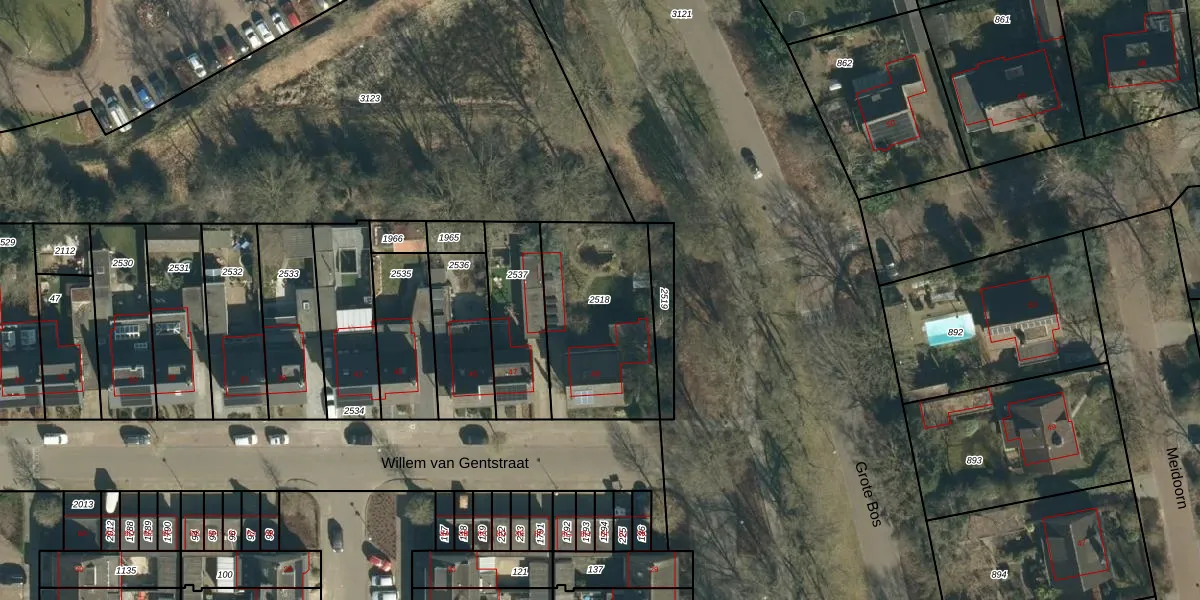 Gebruik de zoekbalk of klik op een perceel om informatie over het perceel te bekijken.