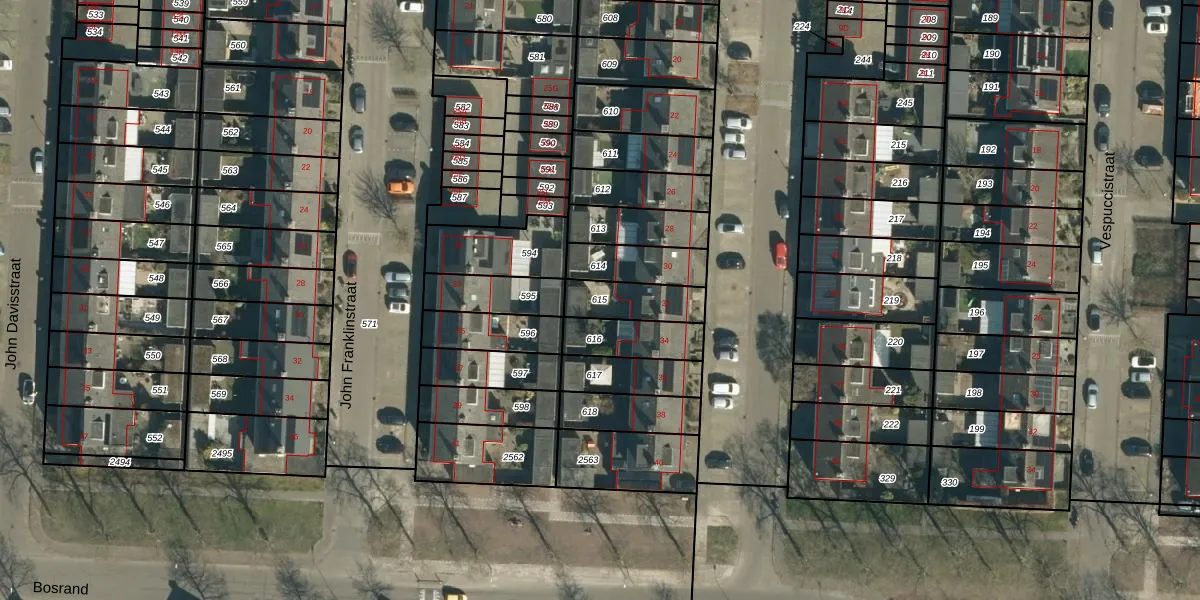 Gebruik de zoekbalk of klik op een perceel om informatie over het perceel te bekijken.