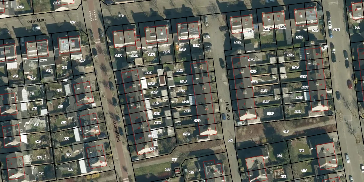 Gebruik de zoekbalk of klik op een perceel om informatie over het perceel te bekijken.