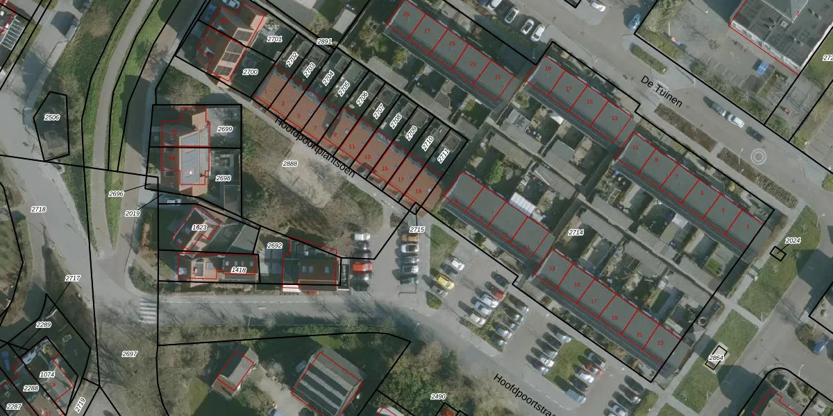 Gebruik de zoekbalk of klik op een perceel om informatie over het perceel te bekijken.