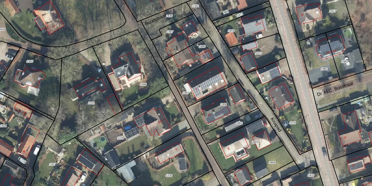 Gebruik de zoekbalk of klik op een perceel om informatie over het perceel te bekijken.