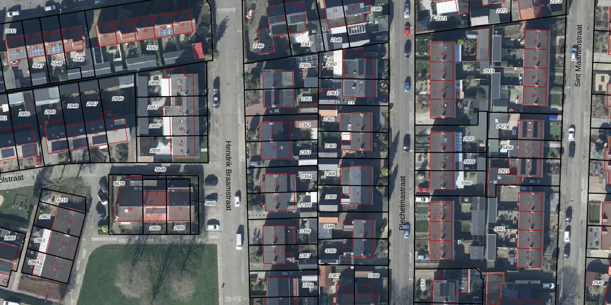 Gebruik de zoekbalk of klik op een perceel om informatie over het perceel te bekijken.