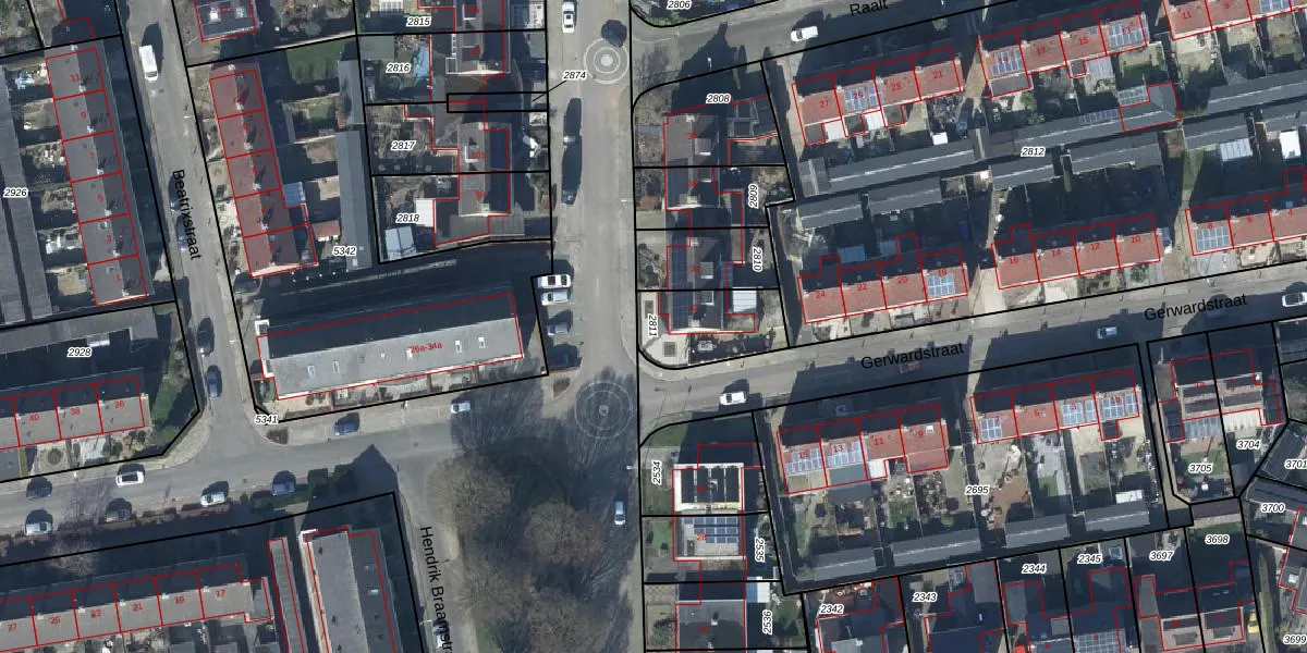 Gebruik de zoekbalk of klik op een perceel om informatie over het perceel te bekijken.