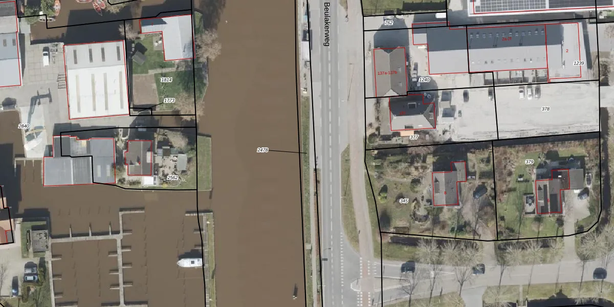 Gebruik de zoekbalk of klik op een perceel om informatie over het perceel te bekijken.