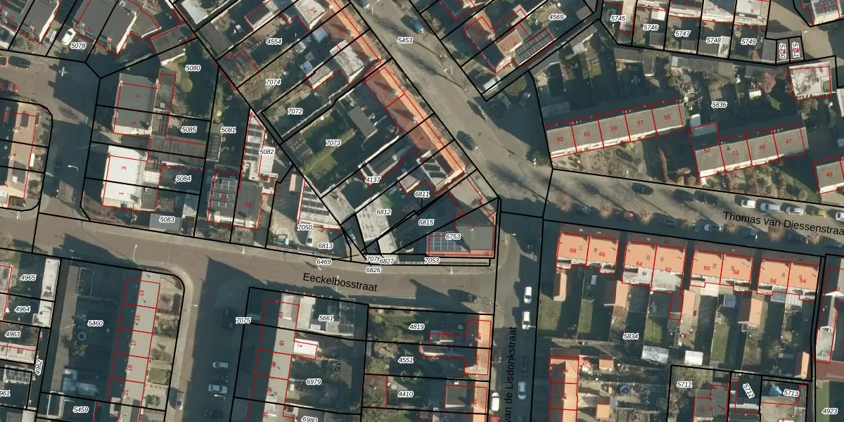 Gebruik de zoekbalk of klik op een perceel om informatie over het perceel te bekijken.