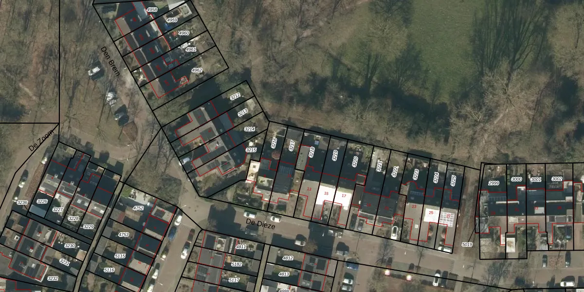 Gebruik de zoekbalk of klik op een perceel om informatie over het perceel te bekijken.