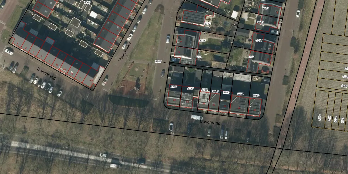 Gebruik de zoekbalk of klik op een perceel om informatie over het perceel te bekijken.