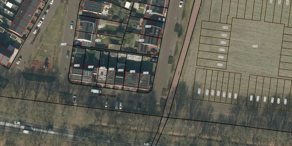 Gebruik de zoekbalk of klik op een perceel om informatie over het perceel te bekijken.