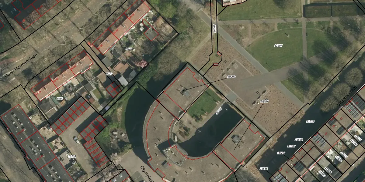 Gebruik de zoekbalk of klik op een perceel om informatie over het perceel te bekijken.