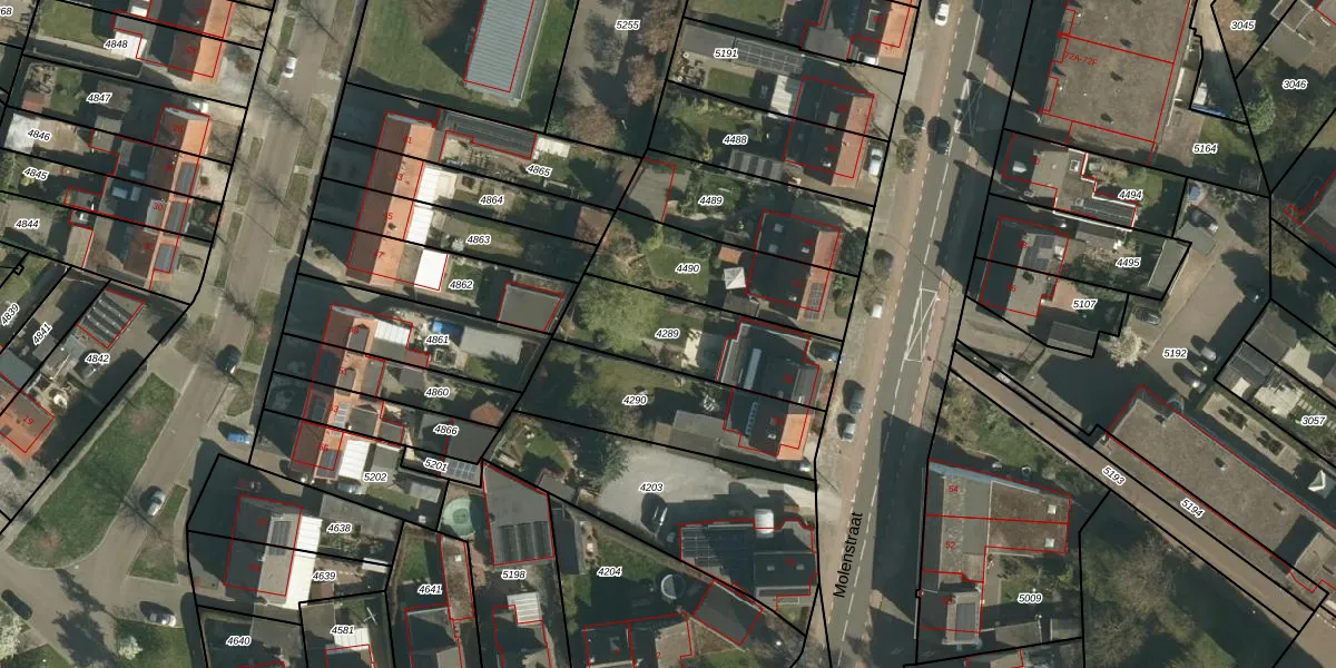 Gebruik de zoekbalk of klik op een perceel om informatie over het perceel te bekijken.