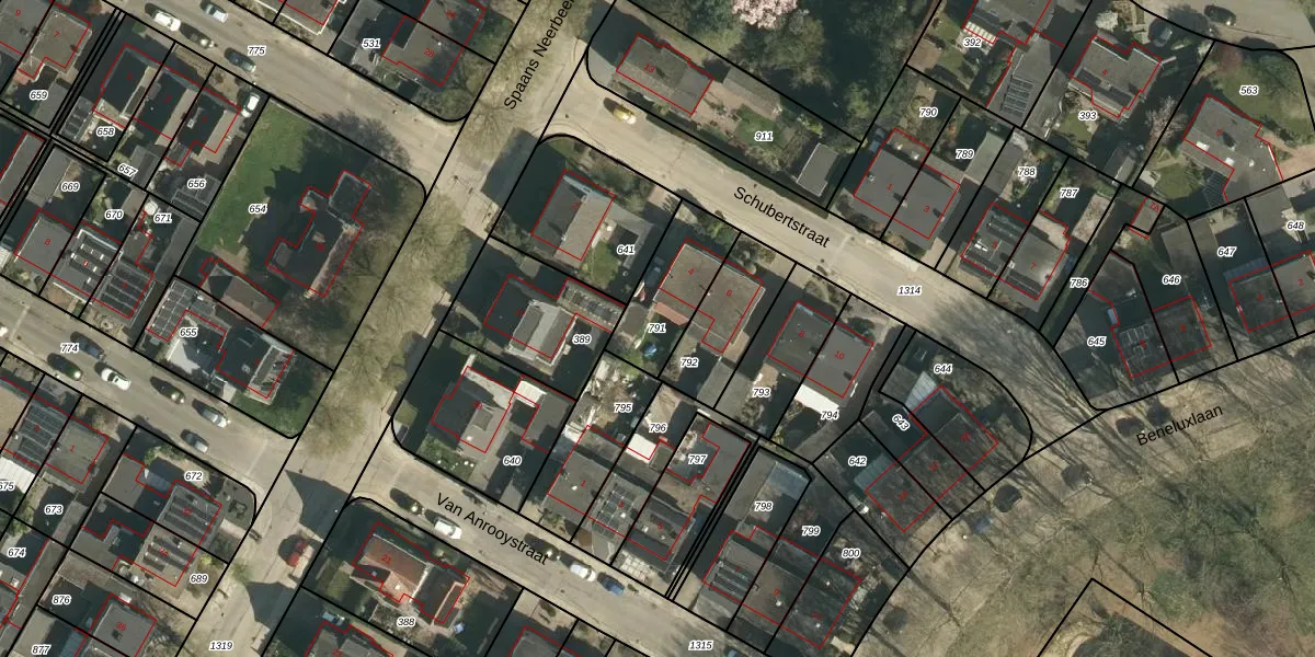 Gebruik de zoekbalk of klik op een perceel om informatie over het perceel te bekijken.