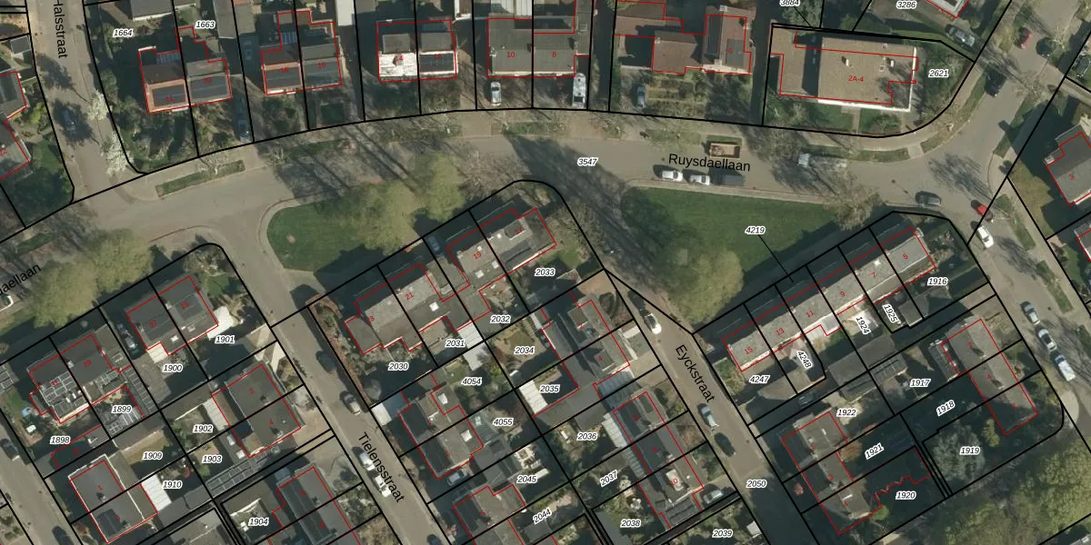 Gebruik de zoekbalk of klik op een perceel om informatie over het perceel te bekijken.