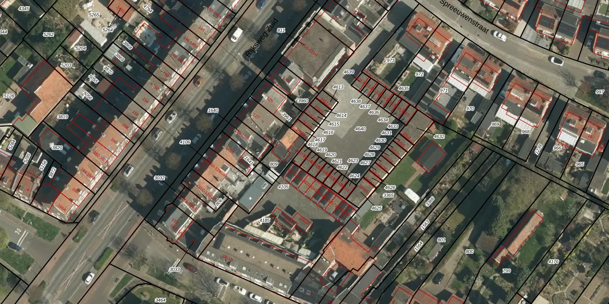 Gebruik de zoekbalk of klik op een perceel om informatie over het perceel te bekijken.