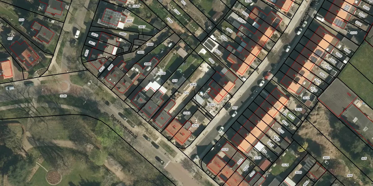 Gebruik de zoekbalk of klik op een perceel om informatie over het perceel te bekijken.
