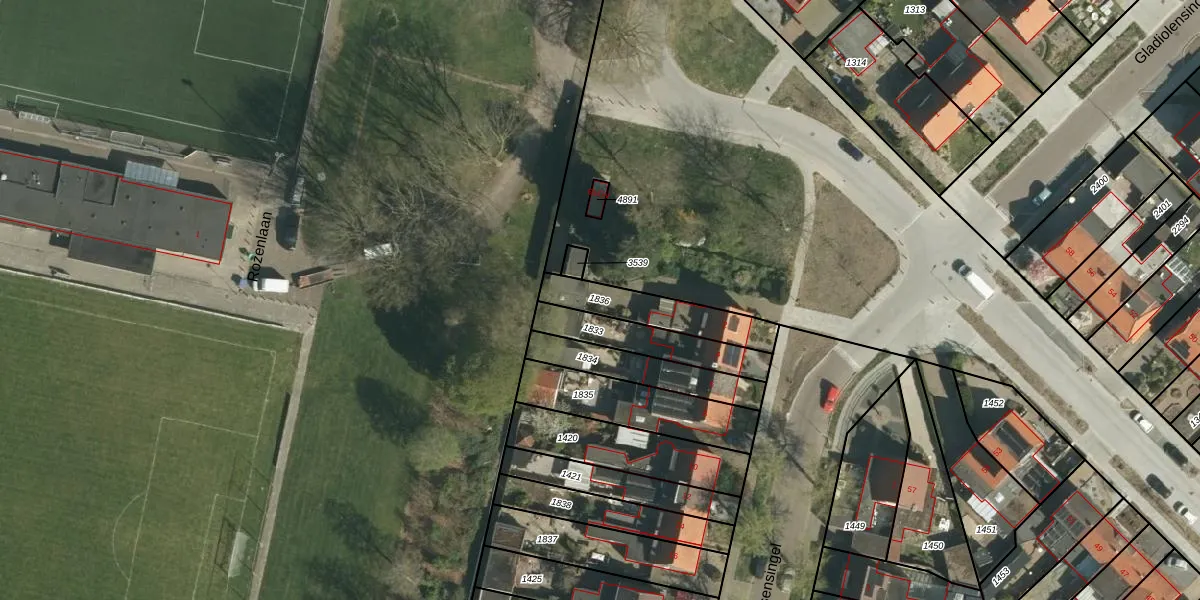 Gebruik de zoekbalk of klik op een perceel om informatie over het perceel te bekijken.