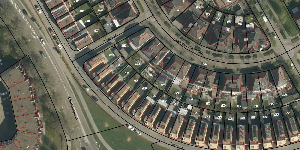 Gebruik de zoekbalk of klik op een perceel om informatie over het perceel te bekijken.