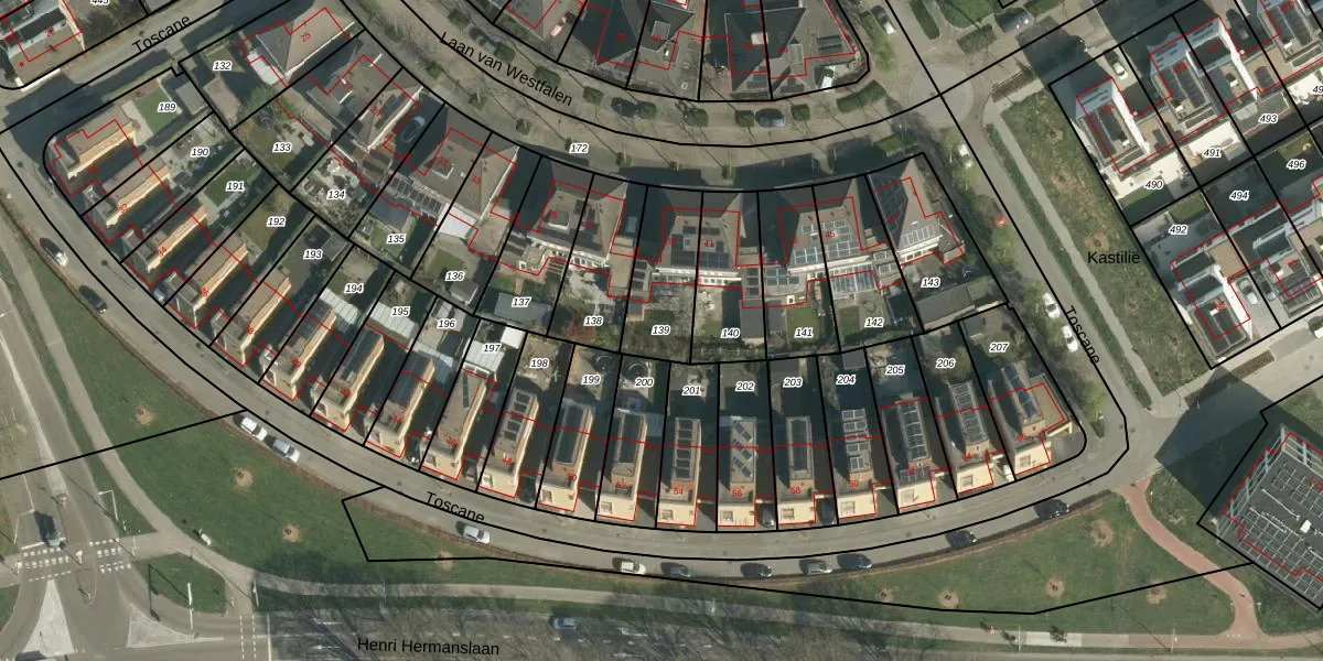 Gebruik de zoekbalk of klik op een perceel om informatie over het perceel te bekijken.
