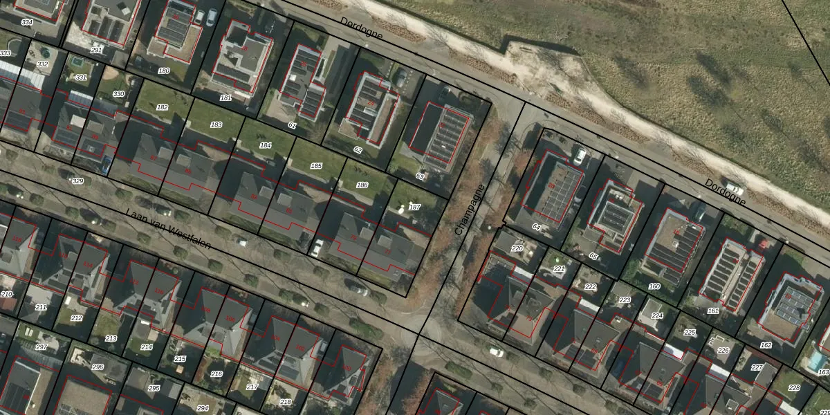 Gebruik de zoekbalk of klik op een perceel om informatie over het perceel te bekijken.