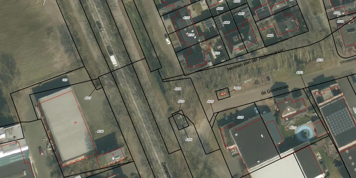 Gebruik de zoekbalk of klik op een perceel om informatie over het perceel te bekijken.