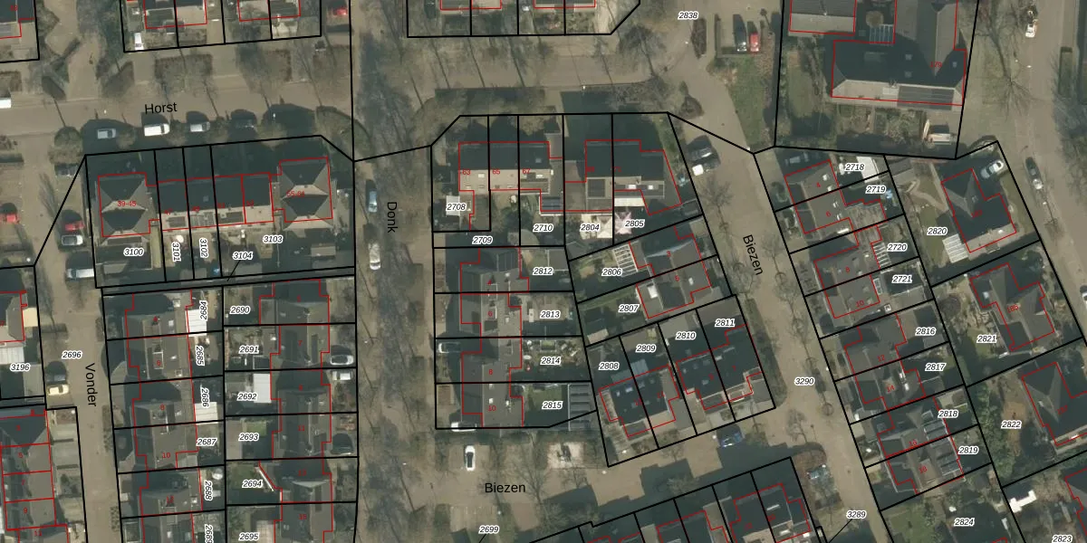 Gebruik de zoekbalk of klik op een perceel om informatie over het perceel te bekijken.