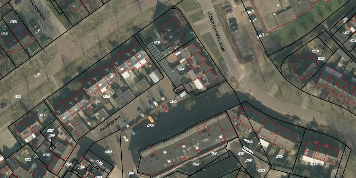 Gebruik de zoekbalk of klik op een perceel om informatie over het perceel te bekijken.