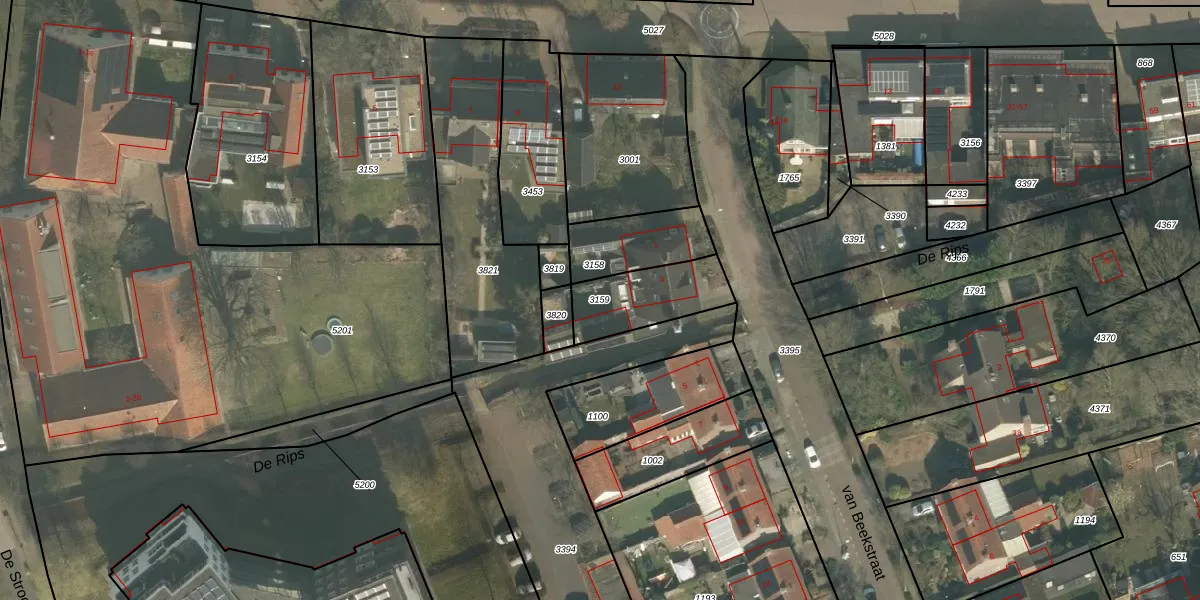 Gebruik de zoekbalk of klik op een perceel om informatie over het perceel te bekijken.