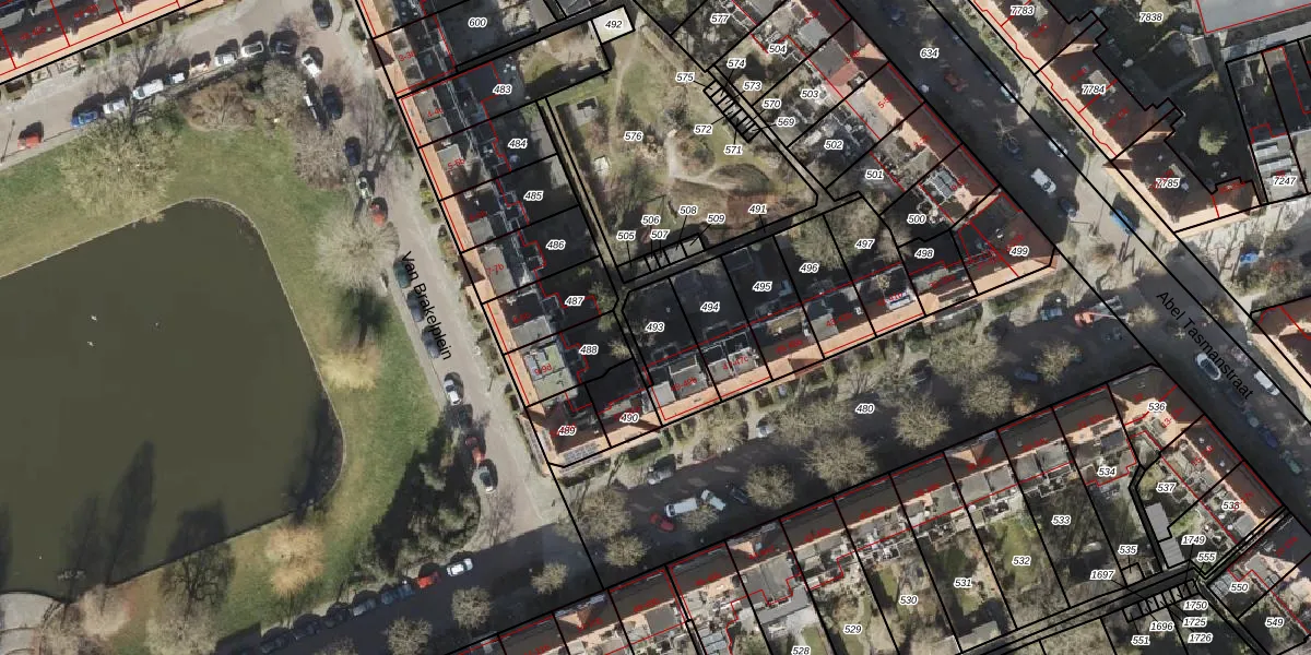 Gebruik de zoekbalk of klik op een perceel om informatie over het perceel te bekijken.