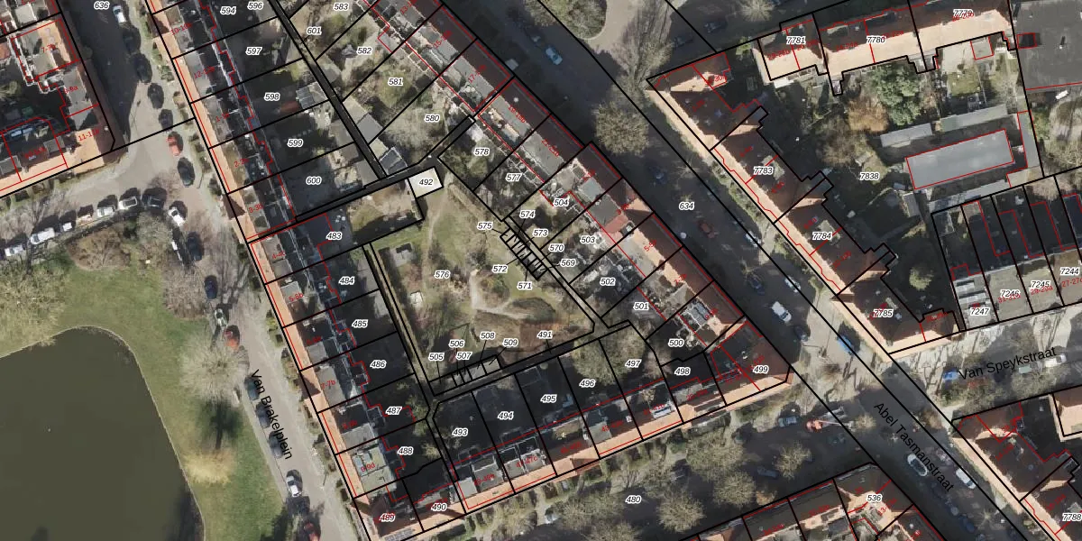 Gebruik de zoekbalk of klik op een perceel om informatie over het perceel te bekijken.